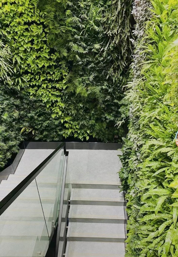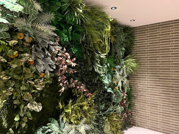 壁一面に広がる緑は、まるで自然の中にいるかのような感覚を与えてくれます。